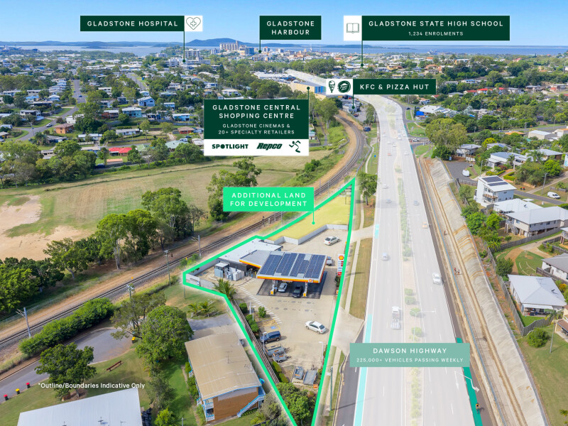 - High-profile Dawson Highway site with remarkable 167m* of signalised main road frontage